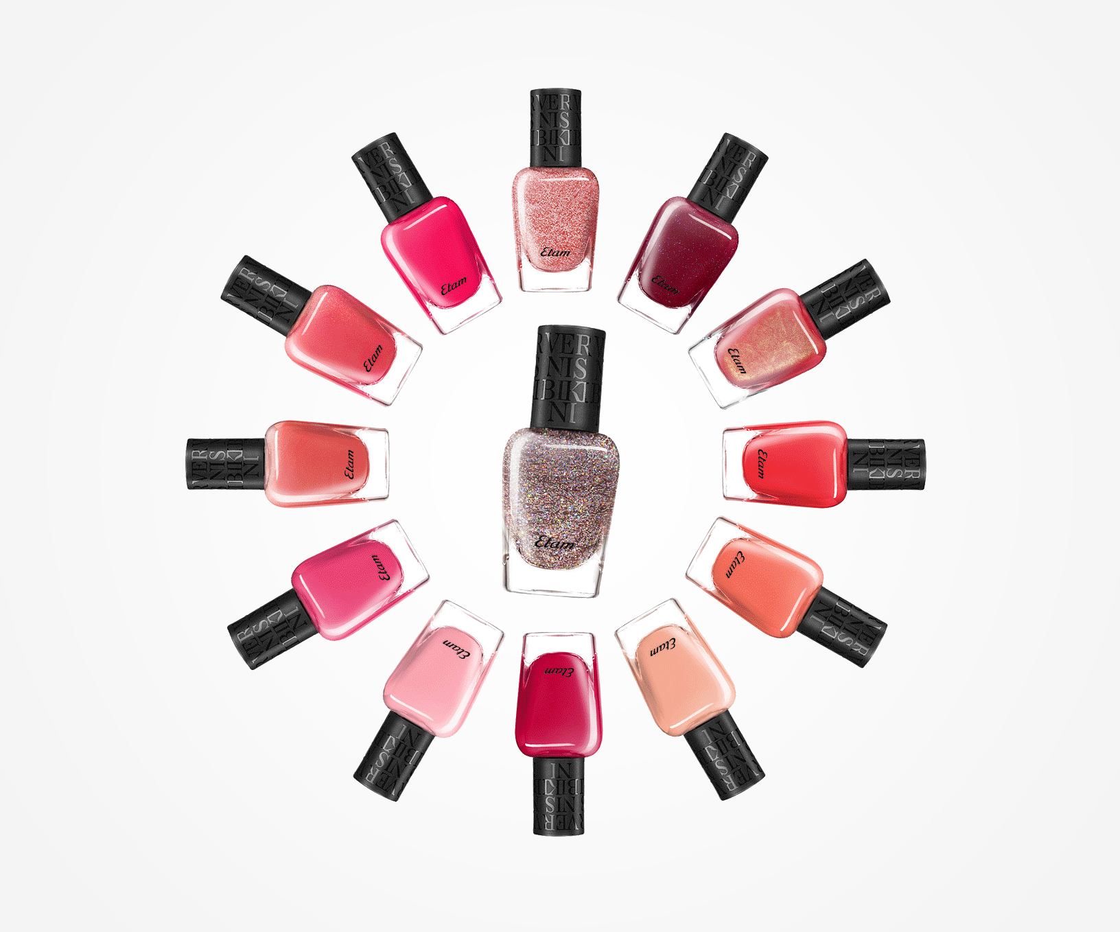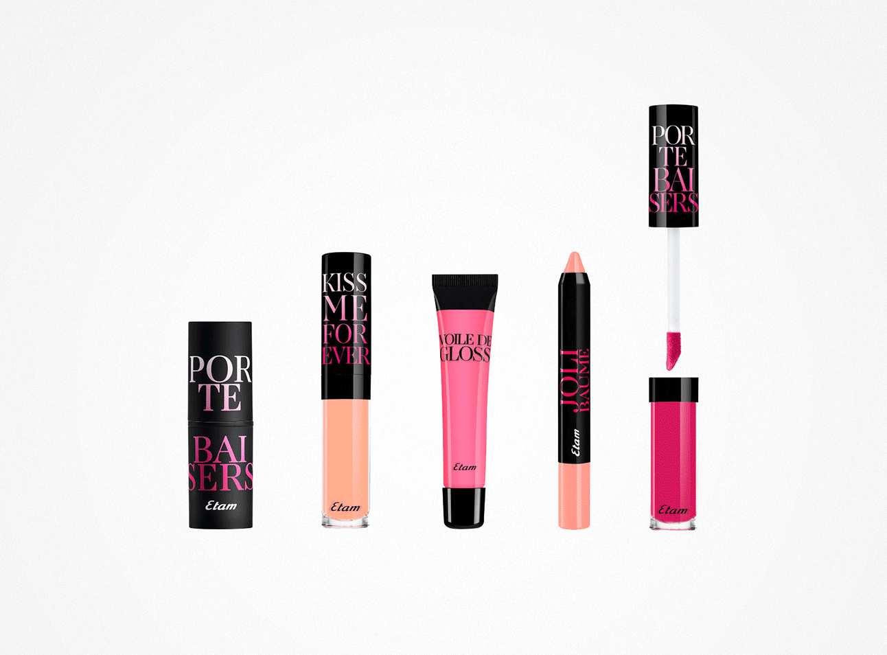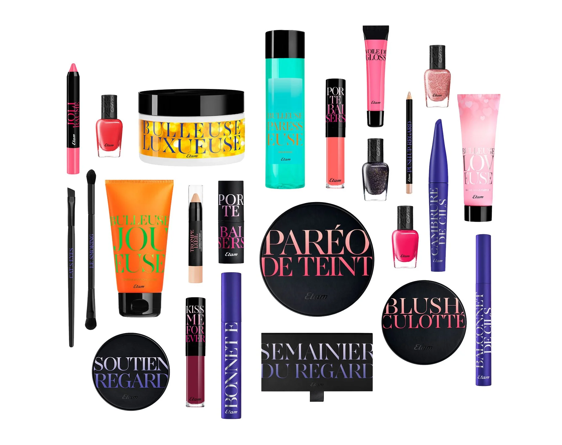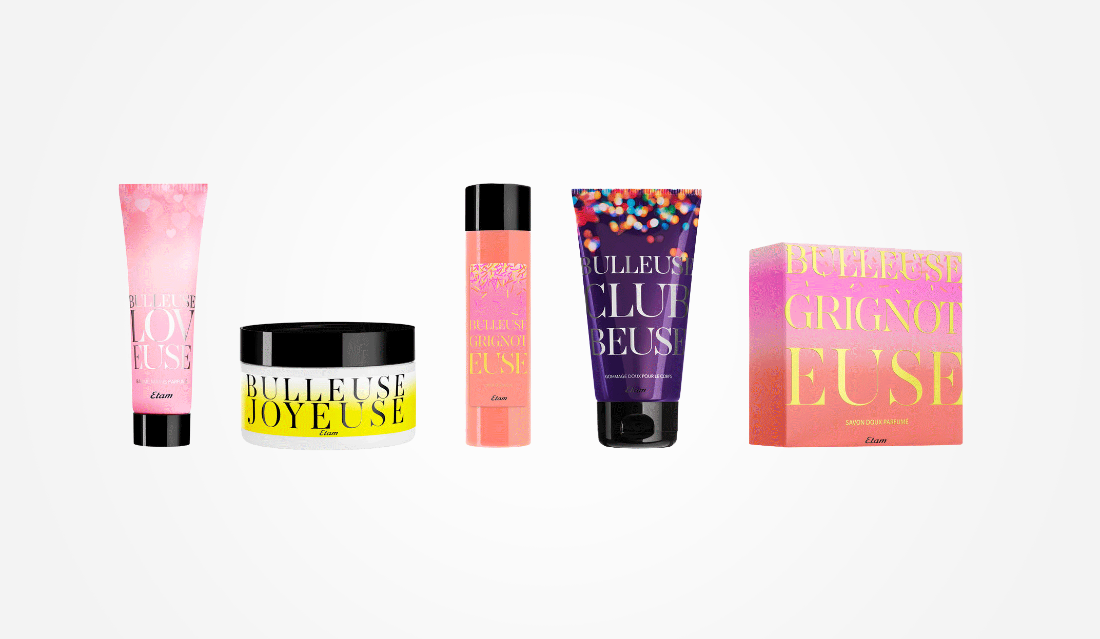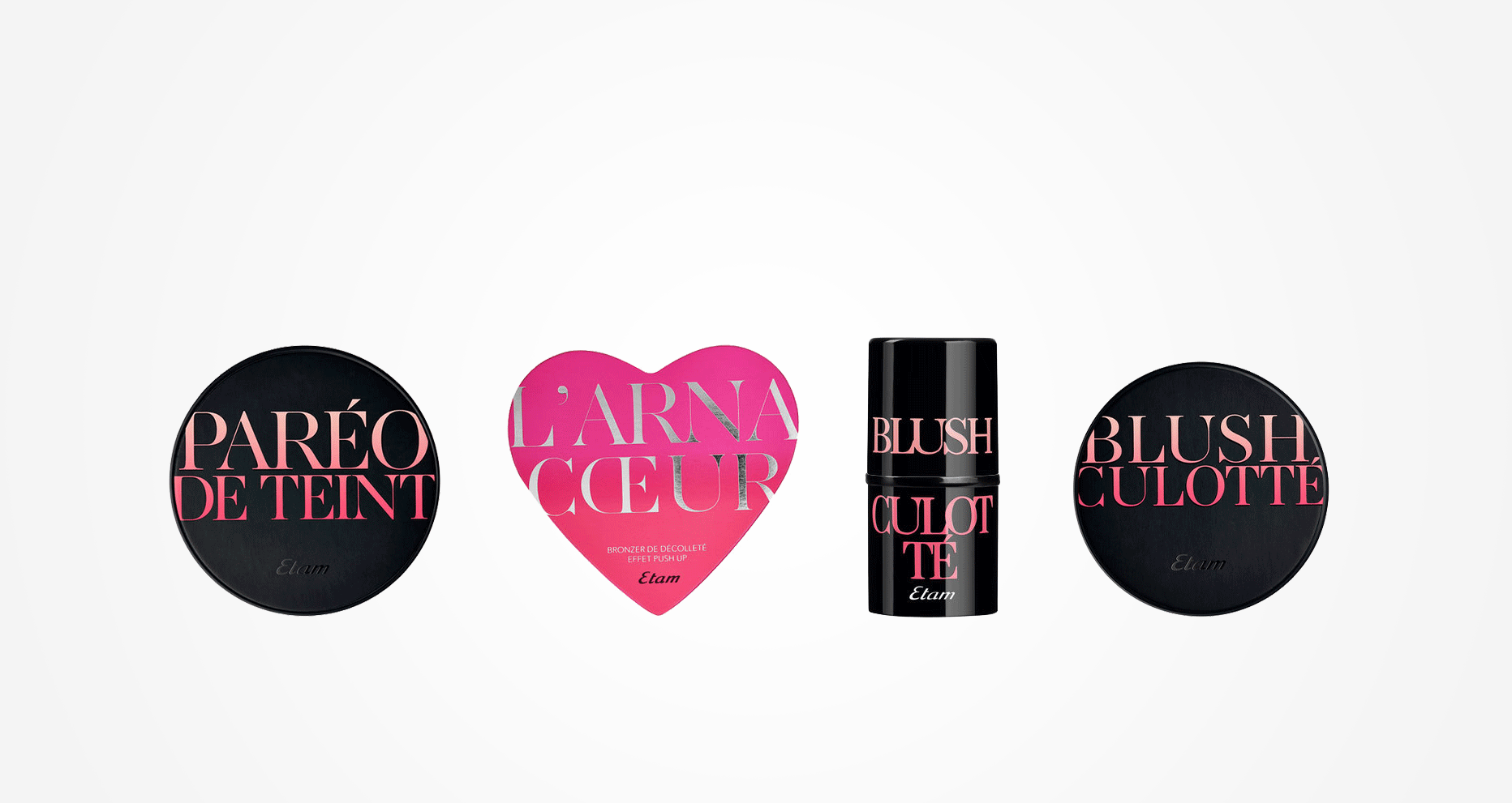 Création des packagings de produits cosmétiques dans le cadre du lancement de la gamme beauté de la marque Etam en 2014.