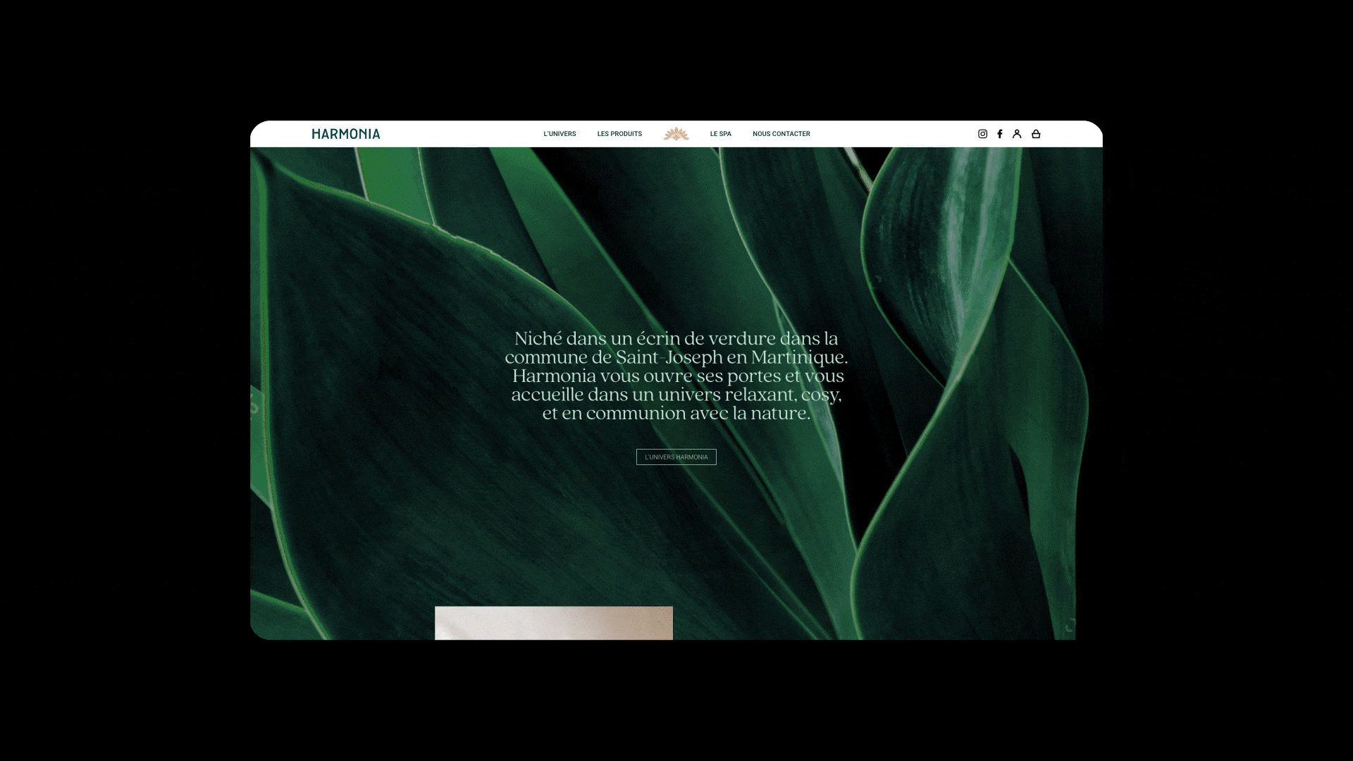 Harmonia est à la fois un spa niché dans un cadre luxuriant en Martinique, et une marque de cosmétiques naturels et locaux. Afin de mettre en valeur ce lieu inédit, nous avons réalisé la direction artistique et l’identité visuelle générale d’Harmonia, comprenant la papeterie (cartes de visites, de fidélité, et cartes cadeaux), les images Facebook, le site web et les produits dérivés. Nous avons également réalisé les packagings de la gamme de produits de soin Harmonia.